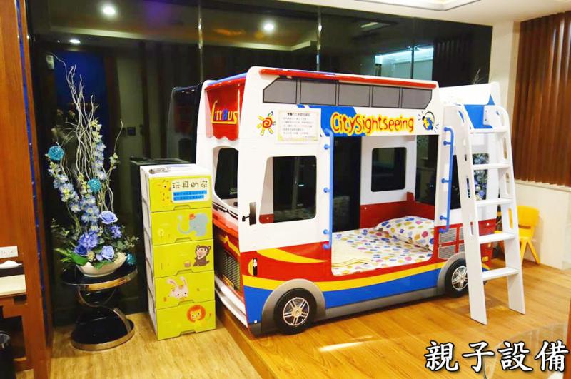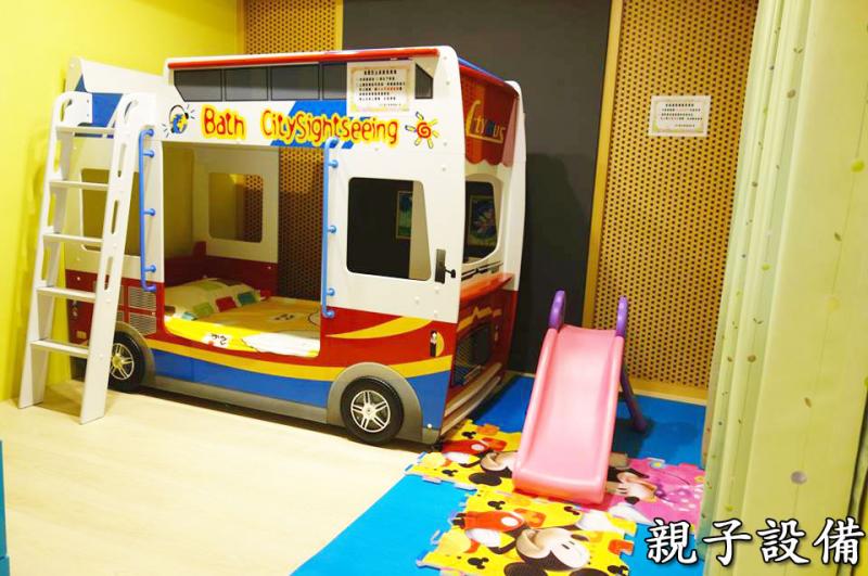 最有人氣的各式旗艦親子房,有跑車床型、雙層巴士床型、帳篷床型,還有小溜滑梯以及各式各樣的玩具,一推出就受到大小朋友的熱烈喜歡!