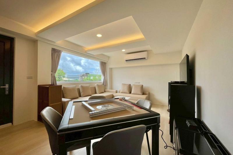 清新四人房|極簡設計 × 舒適共享 這間四人房以極簡為核心,空間佈局俐落乾淨,兩張雙人床各自獨立,讓旅人即使同行也能保有個人休息區域。床墊舒適、床架低矮,降低壓迫感並提升安全性,特別適合親子家庭入住。 房內採用柔白牆面與自然木紋地板,搭配簡約家具與柔光照明,營造溫潤安靜的休息環境。衛浴設計延續一致風格,配有圓形鏡面、掛架、乾濕分離洗浴設備,注重細節也兼顧清潔與機能。