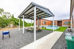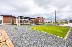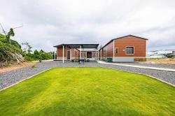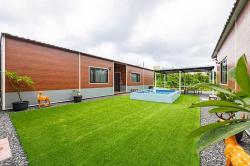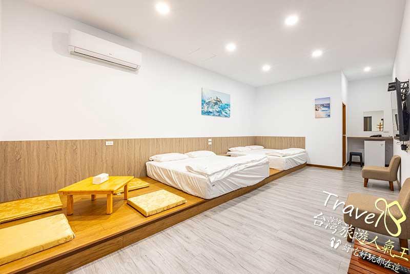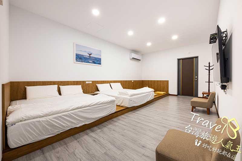 採光明亮、格局方正,這間四人房以純白牆面搭配灰色窗簾與木質地板,呈現出簡約自然的舒適氛圍。