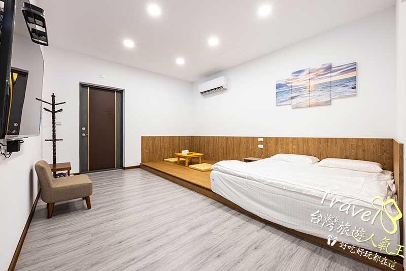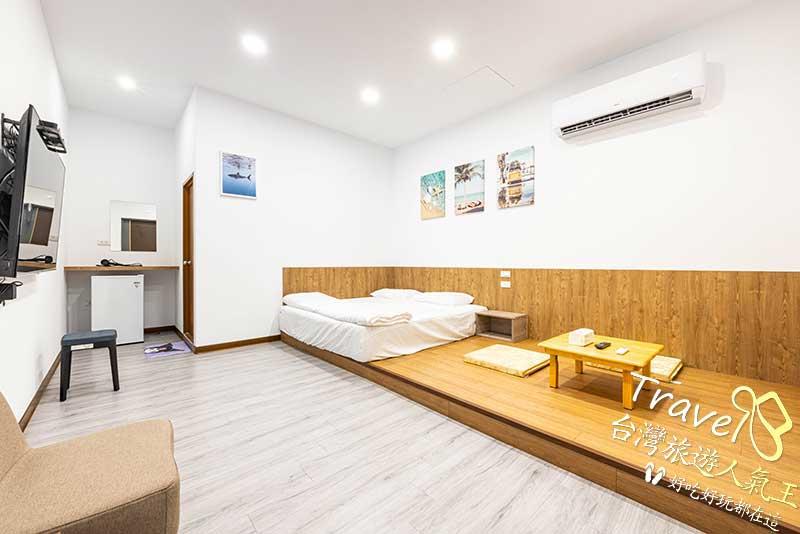 房內配置一張雙人床,搭配休憩座椅與壁掛電視,空間留白適中,讓旅人不感壓迫,輕鬆整理行李與