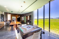 民宿以簡約溫暖的風格打造,融合木質家具與大面開窗,讓自然光灑落每一個角落。每間客房都有專屬景致,不論晨曦日落,皆能感受到宜蘭獨有的純淨氛圍。
