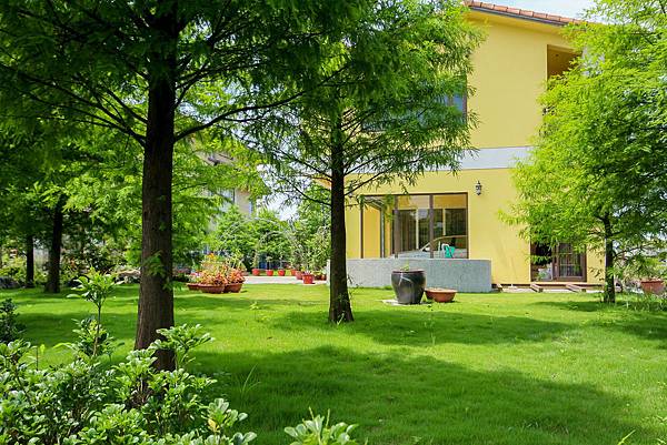 民宿戶外的庭院,先只看到綠意盎然的森林植栽,就忍不住瘋狂的拿起相機及腳架不停的拍起照來,這裡的景色十分適合拍攝藝術沙龍美照,上傳到網路群組,絕對會被認為在國外,為了不要一直解釋自己身在何處,還要記得先標註自己在宜蘭。