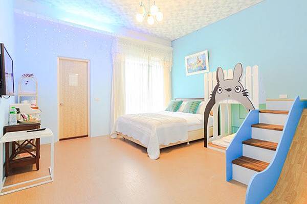 龍貓溜滑梯2+1人房:這間房間就是雙人床加一個兒童床鋪,而且為維護其他客人權益,這裡的房間不能攜帶寵物並禁止打麻將。